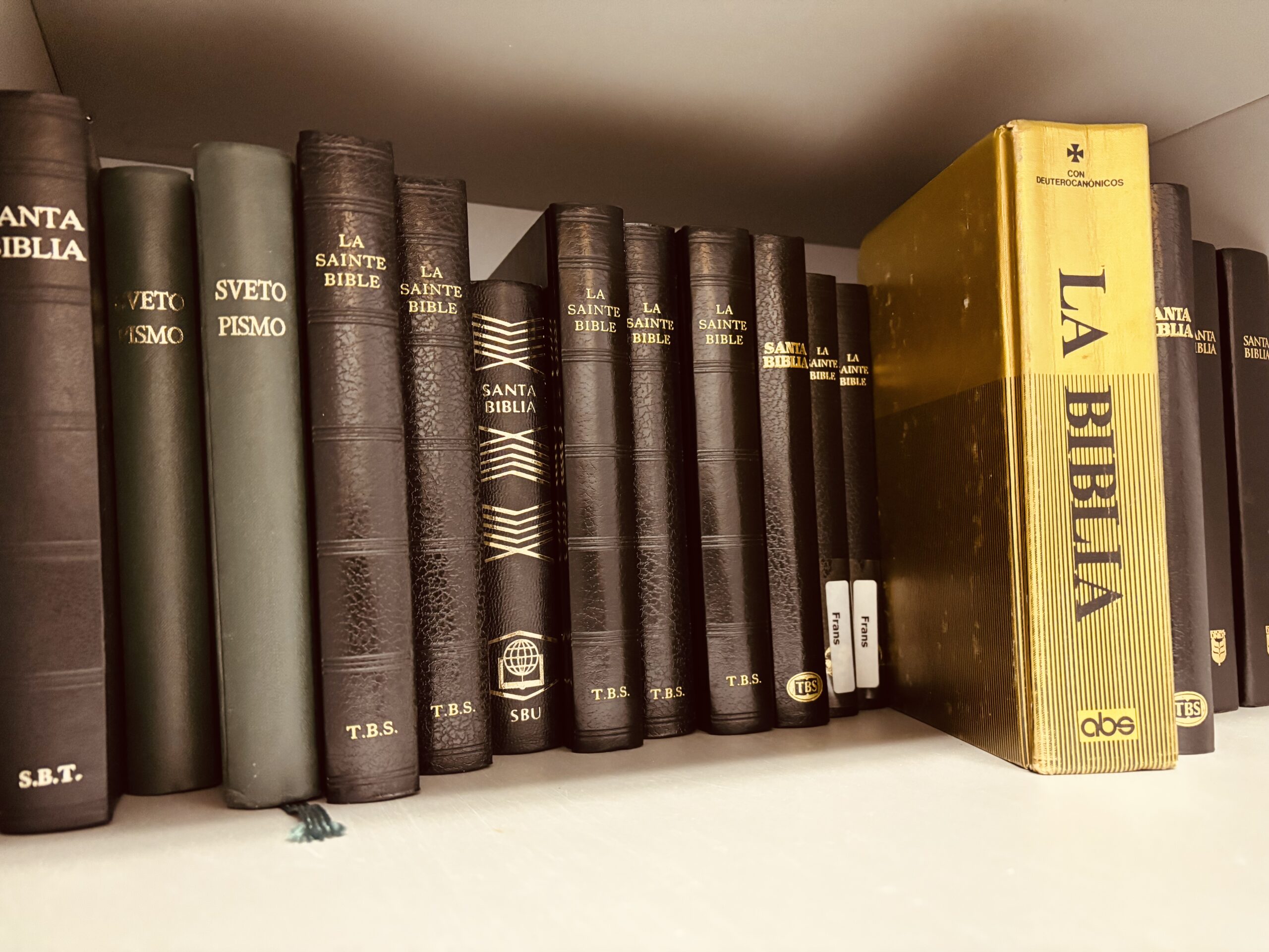 Terug op onze gang, geef ik de Koran aan de Iman en geef ik door bij wie het gebedskleed terecht is gekomen. De Bijbels komen bij de andere in de kast te staan. Als de Bijbel belangrijk voor je is, is het prachtig om hem in je eigen taal te kunnen lezen. Dankzij stichting Volharding hebben we gratis de beschikking over vele vertalingen en versies. Goud waard!